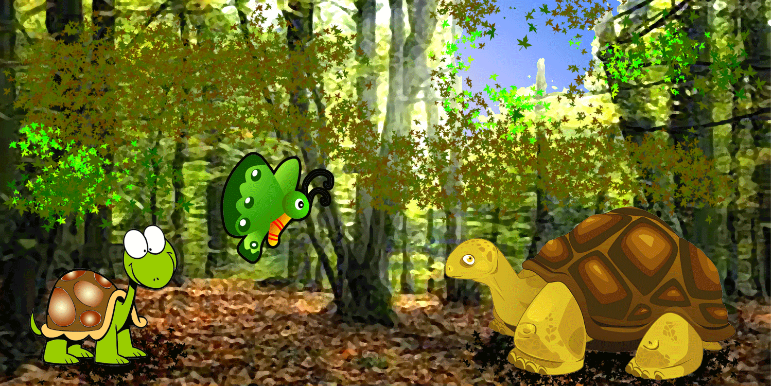 Aquel día la tortuguita iba camino a la escuela pero, se entretuvo con algunas mariposa y pájaros que alegremente cantaban y volaban.